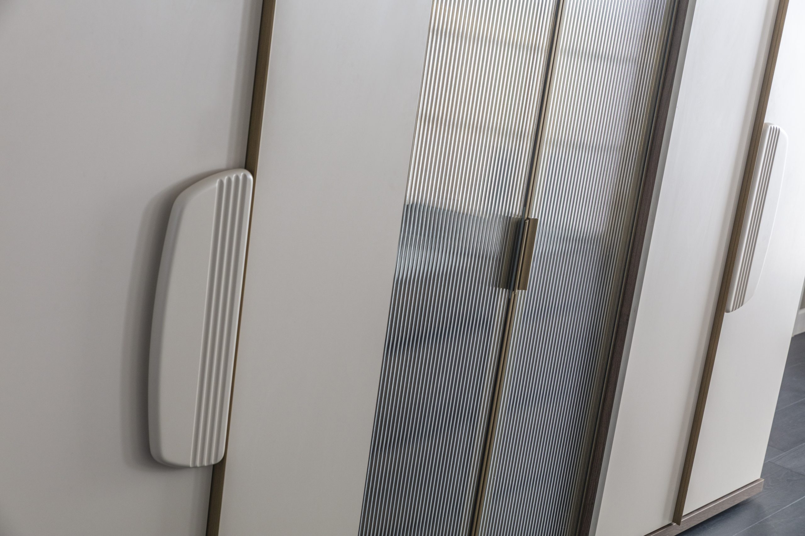 Sticlă Riflată pentru un Design Modern: Textura verticală a sticlei riflate captează lumina într-un mod unic, oferind un aspect contemporan și sofisticat dormitorului tău.